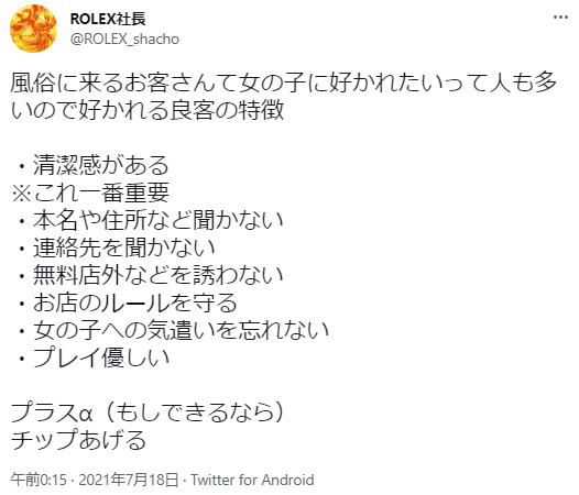 こういうお客様は、しっかり風俗嬢のことを考えてくれていて良客認定です◎
