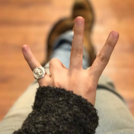 日本ではなじみのないサインですが、この人差し指と中指をクロスさせるハンドサインはGood Luckの意味もあり欧米ではよく使われます。