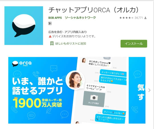 オルカは、登録ユーザー数1900万人を突破している超人気チャットアプリ。