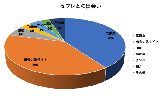 上のグラフを見ても分かるように、セフレを見つけた人の約4割が出会い系サイトで見つけたと回答しています。