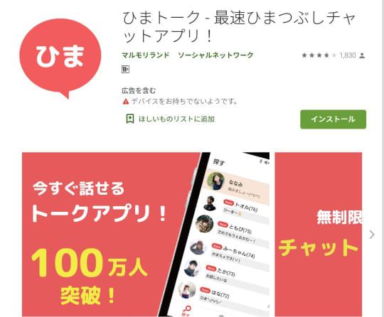 ひまトークは、100万ダウンロードを突破している人気チャットアプリ。