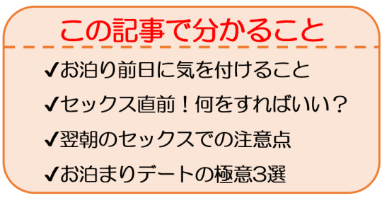 お泊まりセックスの前に!極意と気をつけたい9のポイント
