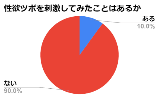 しかし下のグラフから分かるように、性欲ツボ刺激を実際にやっている人はそんなにいません。それでも10人のうち1人は性欲探求者がいるようです。性欲は人間の三大欲求の1つ、いわば本能ですしね。