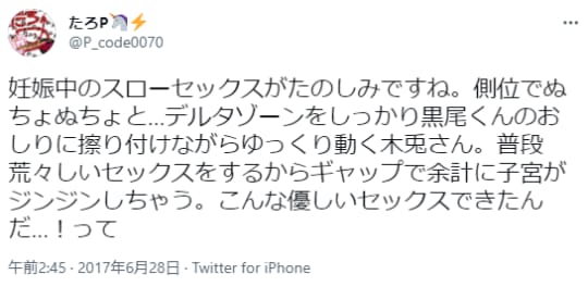 「そして妊娠中は不可能であろう、アクロバティックな体位…」