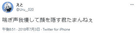 顔を隠すと言う事は「恥ずかしい!」と言う仕草を見事に表現出来ます。しかもその仕草はとってもキュートで可愛いもの。