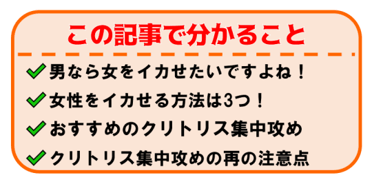 なかなか女性をセックス中に『中イキ』させられないとしても、クリトリス集中攻めであればイカせることは出来ます。