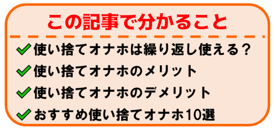 今まで繰り返しタイプを使用していた方も、メリットを見れば使い捨てタイプのオナホを使用してみたくなること間違いなしです!