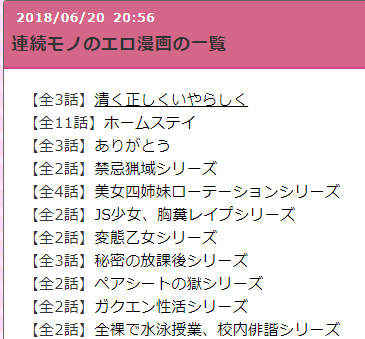 「エロマンガマニア」には「連続モノのエロ漫画一覧」といった項目があり、ストーリー物のエロ漫画が豊富にあります。