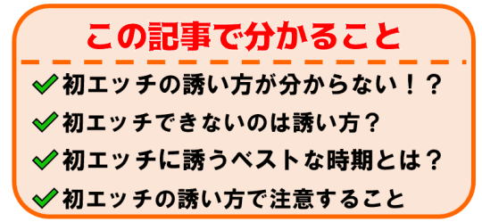 だとしたら、正しい初エッチの時期や誘い方を覚える必要があります。