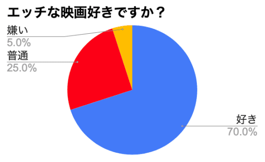 上のグラフは女性に「エッチな映画好きですか?」とアンケートした結果です。