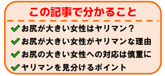 このように理由は様々ですが、どうやらおしりの大きい女性=ヤリマンというのは必ずではないにしろそれなりに信じていいのかもしれませんね。