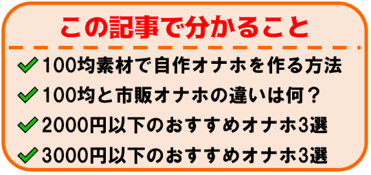 今回は日用品を使ってオナホを作る方法を誰でも簡単に出来るように解説していきます。しかもコスパ重視!すべての材料が100均で揃うように厳選しました。