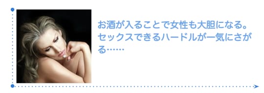 お酒が入ることで女性も大胆になりますし、セックス出来るハードルが一気に下がります。