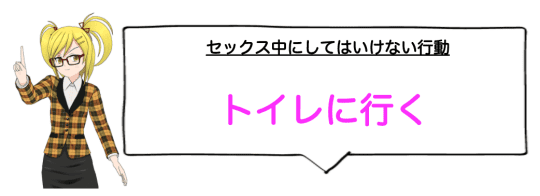 一度火がついたら、トイレはダメです。最後までしたいなら我慢しましょう。