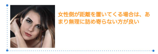 女性側が距離を置いてくる場合は、あまり無理に詰め寄らない方が良いですね。