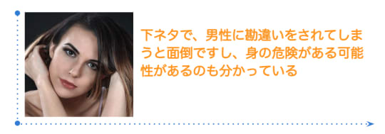 ちょっとした下ネタで、男性に勘違いをされてしまうと面倒ですし、身の危険がある可能性がある事も分かっているので、『この人なら大丈夫』と思える男性相手でないと、気軽に下ネタは話しません。