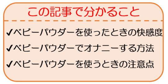 そこで、ベビーパウダーオナニーで至極の体験をしている私が、その方法を伝授いたします!