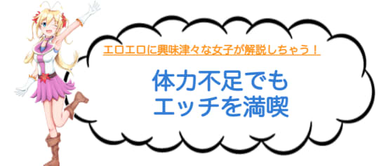 もちろん、体力をつけることにこしたことはありませんが、体力がないからと言ってセックスが楽しめない訳ではないということです。