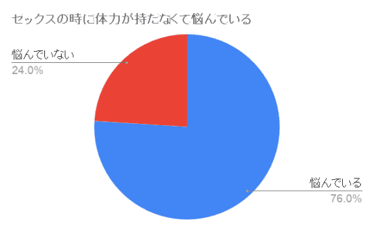 こちらのあるアンケート調査によるグラフを見ての通り、実はセックスの時に体力が持たないという男性は比較的多いんです。