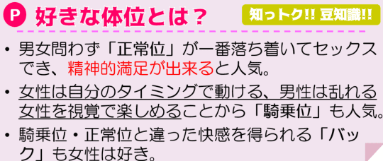 セックスの時の体位は、あくまでもお互いに無理のない体勢の体位でする事をおすすめします。