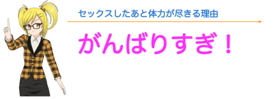 これが原因でセックスの時に体力が持たなかったり、セックスの後体力が尽きてしまうという事が考えられます。