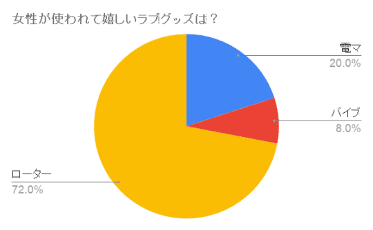 上記のグラフは女性にアンケート調査を行った結果です。これを見ると、女性が相手に使われて嬉しいのは多くの女性がローターであることがわかります。