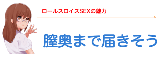 非常に奥までチンコが入りやすい体位でもあるロールスロイスは座位とバックの変形体位なのでチンコの感触をより近くに感じやすいのです。