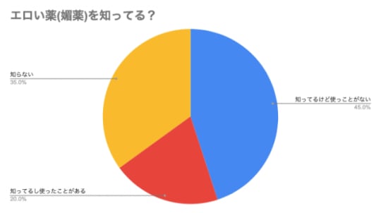 実際にエロい薬を知っている人が半数を越えていますが、使用したことがあるという方は少ないようです。
