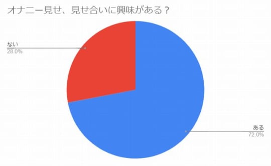 「オナニーを見せること、見せ合いをすることに興味がありますか?」とのアンケートに対し、なんと「ある」と答えた人が7割以上もいることがわかりました!
