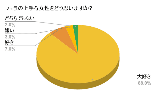 結果は95人の方が「大好き」または「好き」である、といった結果でした。これだけの割合ならば、男性はフェラが上手な女性が大好きだと言えますよね!