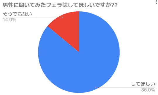 結果は86人の方がフェラを求めていることが分かりました!かなり多くの男性が、パートナーに対してフェラをしてほしいと考えているようです。
