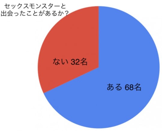 Twitterでセックスの経験のある男性100名に「セックスモンスターと出会ったことがあるか?」を独自でアンケートを行いました。