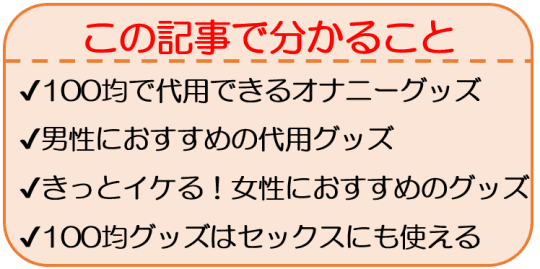というわけで、今回はオナニーに最適な100均グッズを男女別にいくつか紹介するとともに、100均グッズでできるプレイも解説いたします!