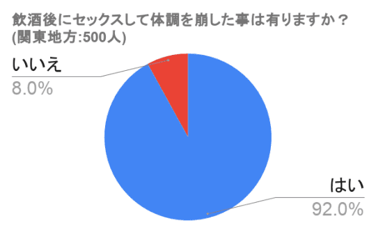 なんと90%以上の方が、飲酒後にセックスし、体調を崩した事が有ると言っています。