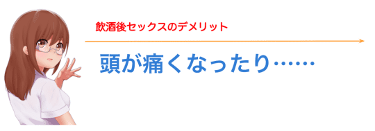 「確かに・・お酒飲んだ後セックスすると、頭痛が起きるな・・・」そう思った方は、飲酒した後、大人しくしておきましょう。