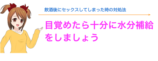 もし、飲酒後セックスしてしまっても慌てず、起床した後には水分を沢山とる様にしましょう。