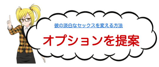 それはズバリ‼・セックスにオプションを提案する・精力ドリンクを彼氏に飲ませる・下着をセクシーランジェリーに替える・ごっこ遊びを取り入れる。
