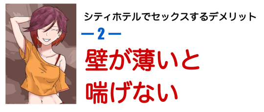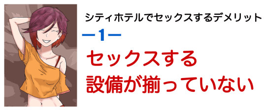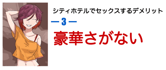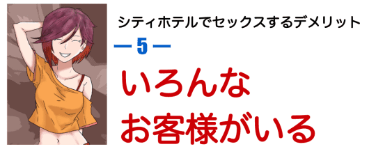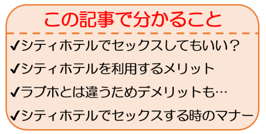 一方シティホテルは泊まる場所です。セックスをすると、どうしてもデメリットが目に付きます。紹介していくので、利用するかどうかの参考にしてみてください。