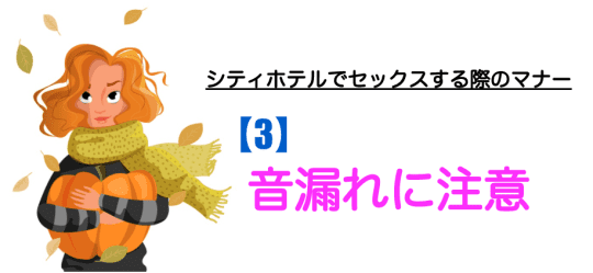 何度も書いていますが、セックスの音漏れに注意しましょう。喘ぎ声が聞こえてしまうと怒られてしまいます。スタッフもこちらも気分が悪くなるでしょう。