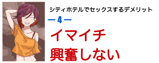 ラブホと違ってセックスモードにならず、充実した行為ができなくなります。イマイチ気持ちが盛り上がりません。