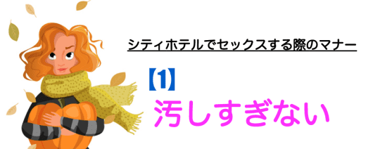 シティホテルもラブホもですが、汚しすぎるのはNGです。スタッフに迷惑をかけますからね。常識の範囲内で使うようにしましょう。