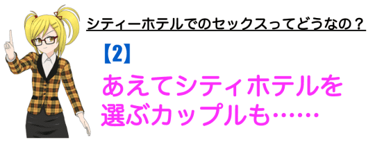 詳しくは他の見出しで解説しますが、シティホテルにはメリットがあります。そのためあえてシティホテルでセックスをするカップルも多いですよ。