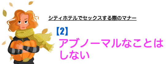 こうしたアブノーマルなプレイはシティホテルでしないようにしましょう。汚れるリスクがありますし、設備が壊れるといったトラブルになります。
