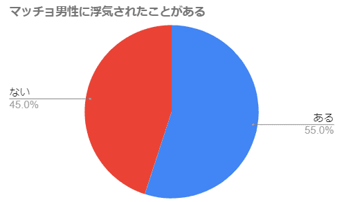 マッチョと付き合ったことがある女性100人に浮気されたことがあるかアンケートを取ったところ、半数以上の人があると答えたんです!