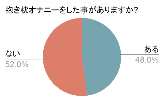 抱き枕を使ってオナニーをした事があると答えた人の割合は、あるとないがほぼ半々という結果です。