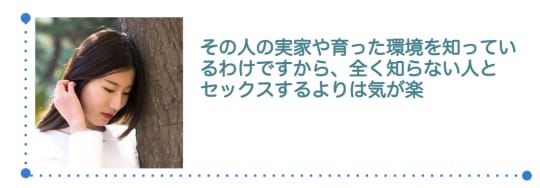 その人の実家や育った環境を知っているわけですから、全く知らない人とセックスするよりは気が楽ですよね。