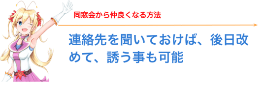 同窓会で再会し、ターゲットに絞った同級生とは、必ず連絡先を交換しておきましょう!