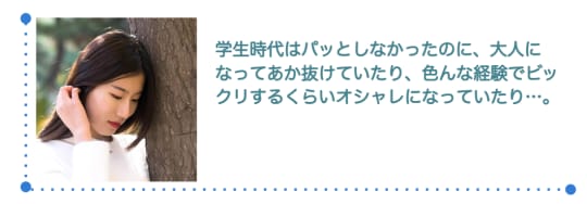 学生時代はパッとしなかったのに、大人になってあか抜けていたり、色んな経験をする事でビックリするくらいオシャレになっていたり…。