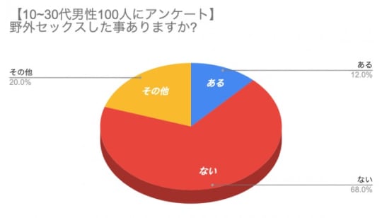 そして、その他という返答なのですが、セックスはしていないけれどおっぱいを触ったり、キスをしたり、セックスの前戯的な事を野外でした事ならあるという返答が多数ありました。