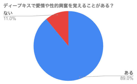 男女100人に独自のアンケートを取りました。ディープキスで愛情や興奮を覚える人がほとんどのようですね。